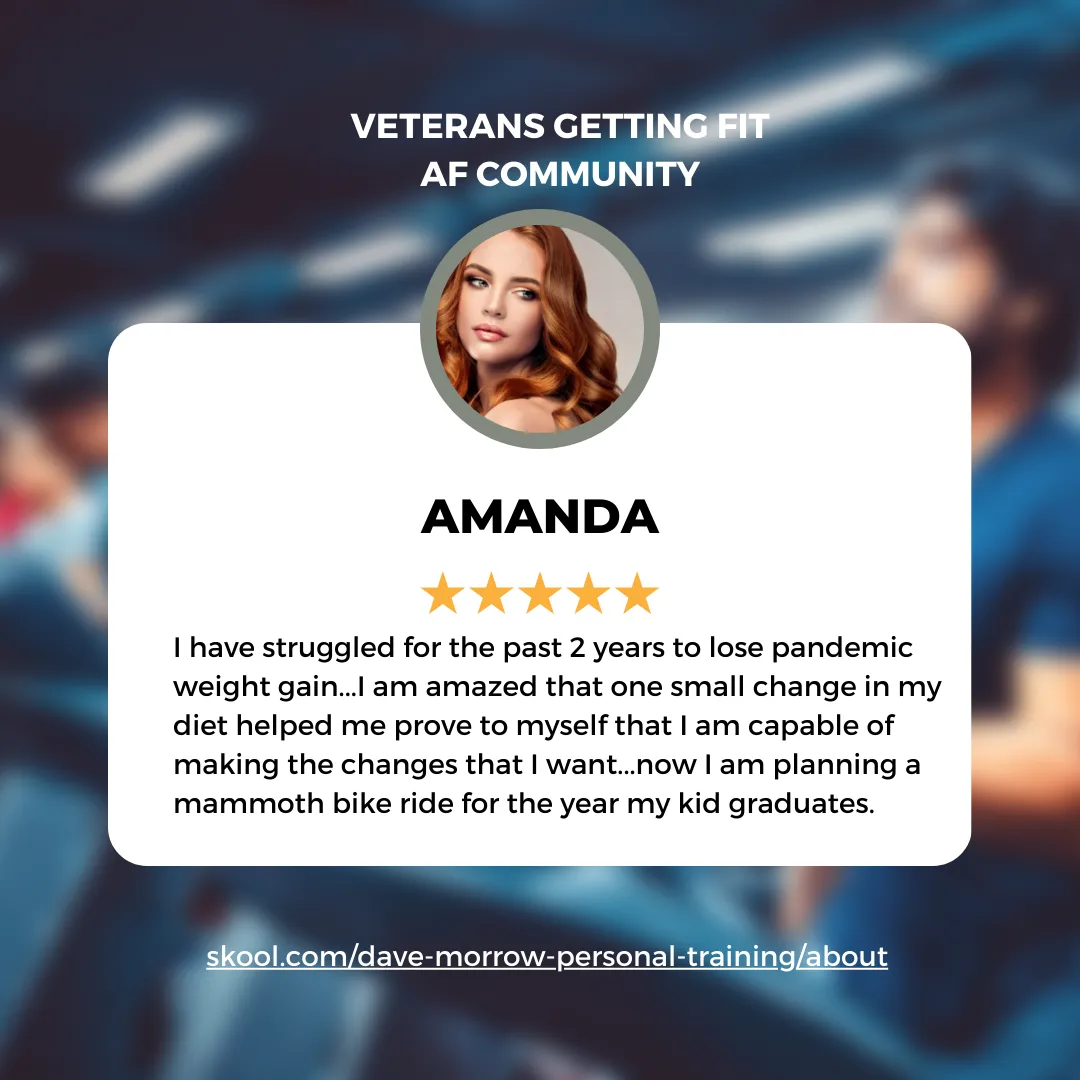 Follow my customized program designed for veterans. At-home body weight programs and kettlebell programs are on the menu.to fit your fitness needs. Get the weight loss results you want and keep the weight off.