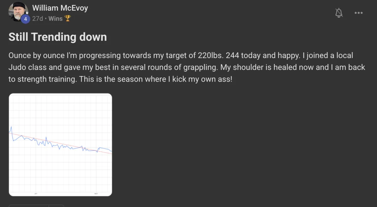 Devise a new system to solve my problems on the fly, link all my health modalities into my own protocol, see the scale go down, strength go up and life enjoyment skyrocket...Be excited about hitting the gym and taking on new challenges. But most importantly, becoming more enlightened and connected to my humanity.