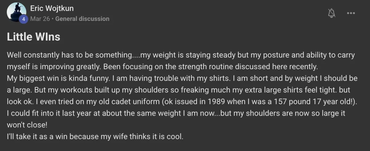 No fluff, no fads, no outsiders - just people who get it. There aren't many veteran health and fitness communities. We keep your privacy safe, especially if you're still serving or active L.E.O.